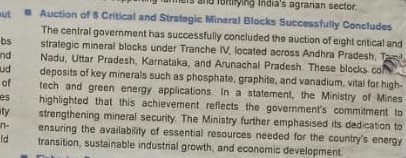 http://111.93.178.142:25000/jspui/handle/123456789/2398| Title: | Auction of 8 critical and strategic mineral blocks successfully concludes |