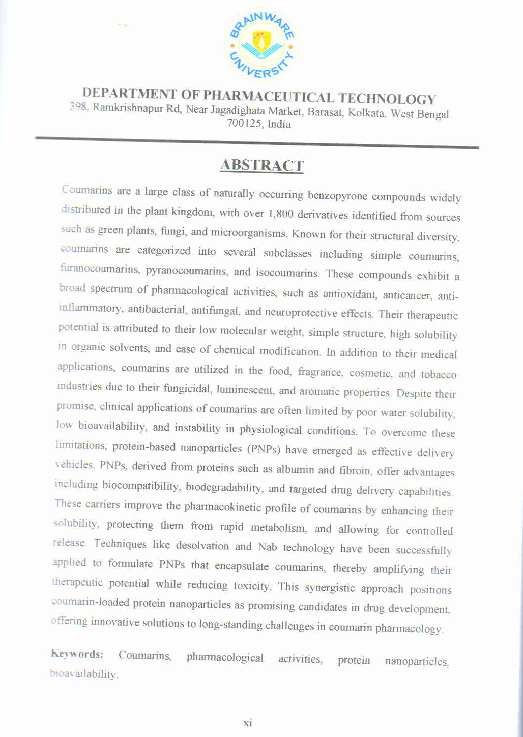 http://111.93.178.142:25000/jspui/handle/123456789/2598| Title: | Formulation and evaluation of coumatin derived protein nanoparticles for enhancement of therapeutic efficacy |