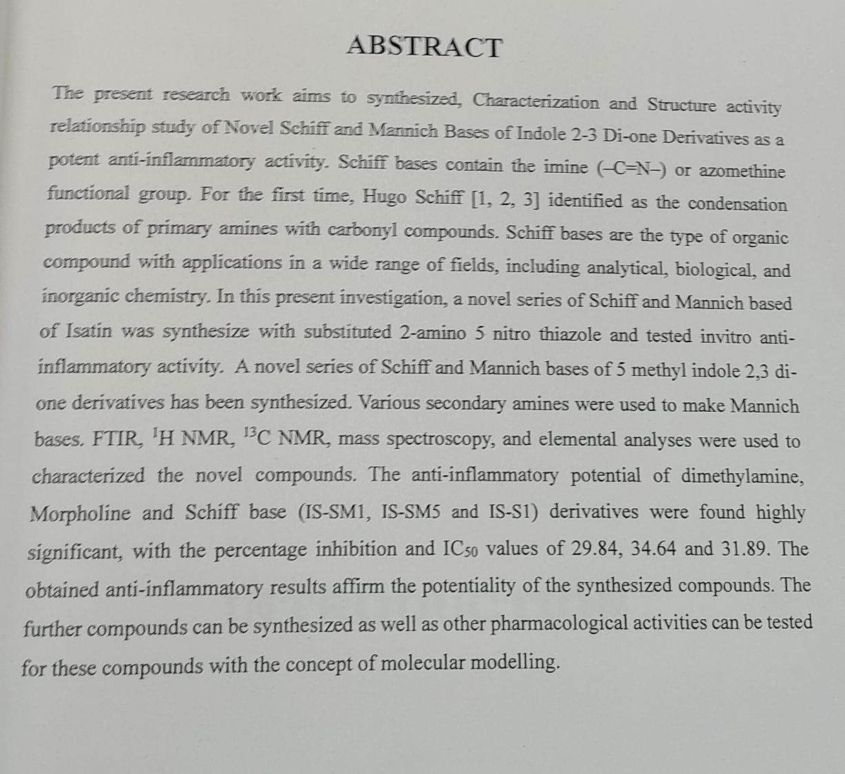 http://111.93.178.142:25000/jspui/handle/123456789/2628| Title: | ynthesis, characterization and anti-inflammatory potential of novel schiff and mannich bases of indole 2-3 di-one derivatives |