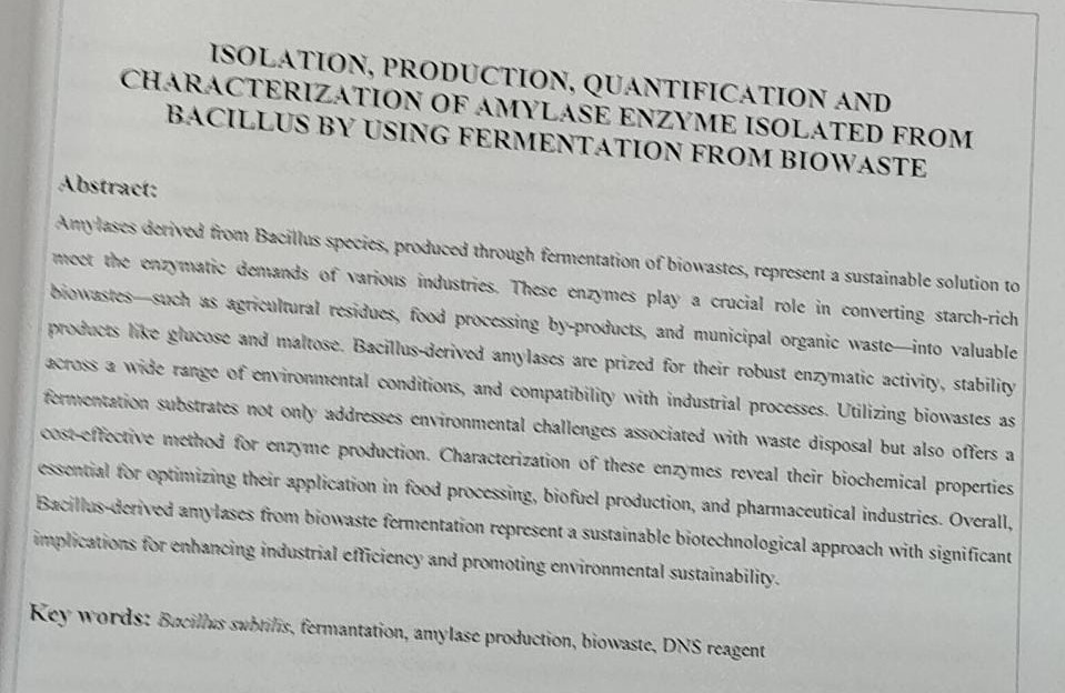 http://111.93.178.142:25000/jspui/handle/123456789/2632| Title: | Isolation, production, quantification and characterization of amylase enzyme isolated from bacillus by using fermentation from biowaste |