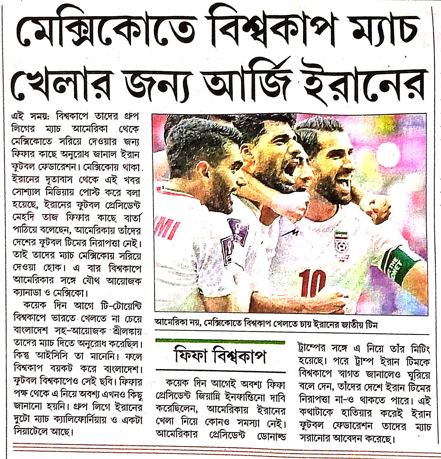 Title: মেক্সিকোতে বিশ্বকাপ ম্যাচ খেলার জন্য আর্জি ইরানের